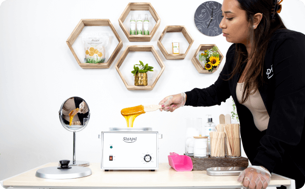 Typically, around 30 minutes for the wax to be fully heated and ready for application. Keep the cartridge inside of the warmer while applying the wax.